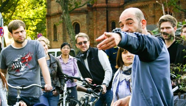 Wesentlich weniger anstrengend als eine Führung zu Fuß. Auf leichtläufigen Rädern sind wir in entspanntem Tempo unterwegs. Außerdem stoppen wir alle fünf bis zehn Minuten an interessanten Orten.